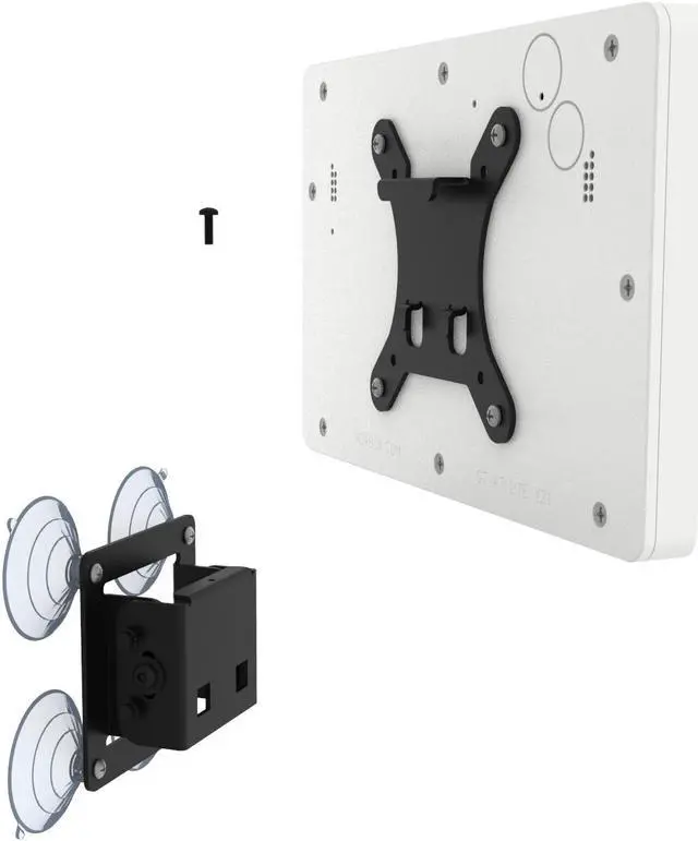 The VESA mounting kit includes everything you need to directly attach it to glass surface. Simply insert the included suction cups into the wall mounting plate, clean the glass surface with the included alcohol wipes. Finish your installation in mere minutes!