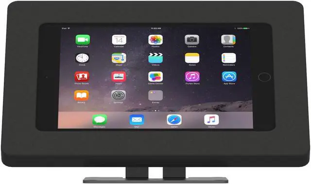 The VidaMount Adjustable Tilt iPad / Android Tablet Display is a secure, elegant tablet kiosk that is perfect for Point-of-sale (PoS) setups, retail display environments, client sign-ins, trade show exhibitions, or even public events. Its rotating head design allows easy tablet access for the user at a comfortable angle and can either flip or swivel to face another user on the opposite side. This can be used with a kensington lock tether to withstand the high traffic abuse of typical kiosk environments.