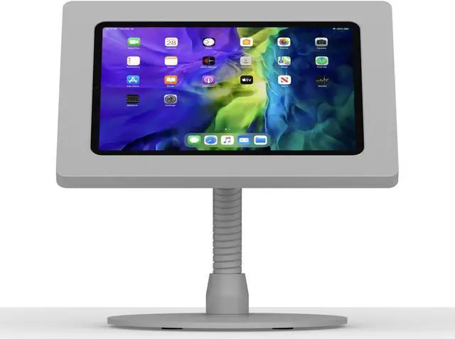 Our portable flexible stand allows any tablet to be shown securely easy viewing, with kensington lock slot for the ultimate in security. Perfect for high traffic locations or retail setups!