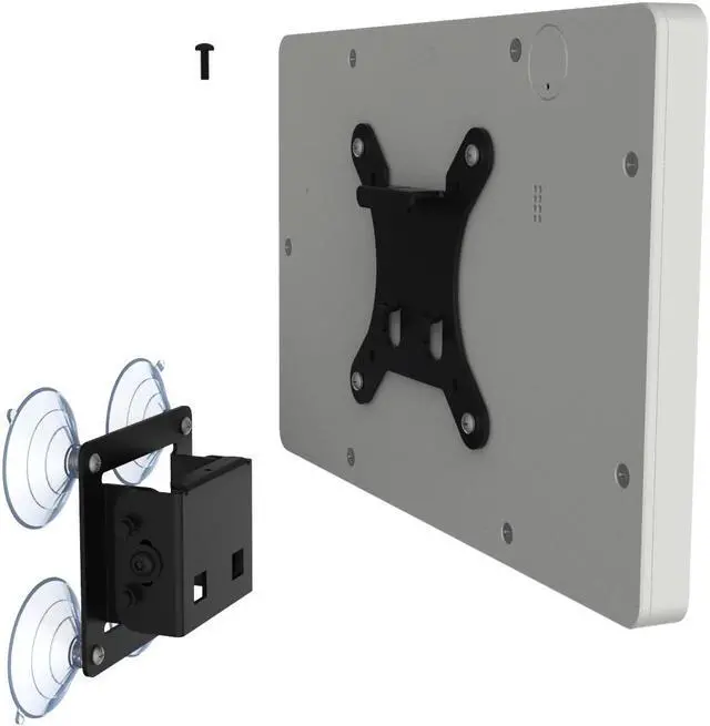 A suction-cup based mounting design allows easy installation for temporary setups and combined with its two part wall mount design. Removing your tablet after mounting can be done in seconds! Bracket can be adjusted to tilt the display angle for optimal viewing.