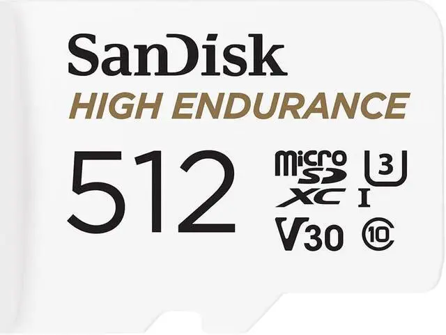 Designed to last, the SanDisk High Endurance microSD UHS-I card gives you the peace of mind that your dash cam and home monitoring security system will capture crucial footage when it happens, recording and re-recording worry-free. With capacities of up to 512GB, you can record and save more Full HD or 4K videos. It's built tough, too: it records in extreme heat or freezing cold, plus it's shock proof, water proof and humidity proof. (1GB = 1, 000, 000, 000 bytes. Actual user storage less. Card only. See product packaging and official SanDisk website for more information and limitations. Compatible device required. Full HD (1920x1080) and/or 4K UHD (3840x2160) video support may vary based on host device, file attributes, usage conditions and other factors. See HD page on official SanDisk website.