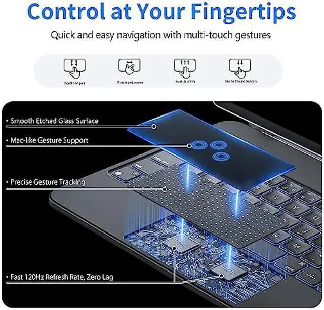 Multi-Touch Trackpad: Equipped with a built-in multi-touch trackpad, our keyboard case offers precise cursor control and effortless navigation. You can easily swipe, scroll, and click on the trackpad, just like using a laptop, enhancing your productivity and efficiency. A built-in rechargeable battery fuels up to 7 days of use per USB-C charge. (USB-C charging cable included)