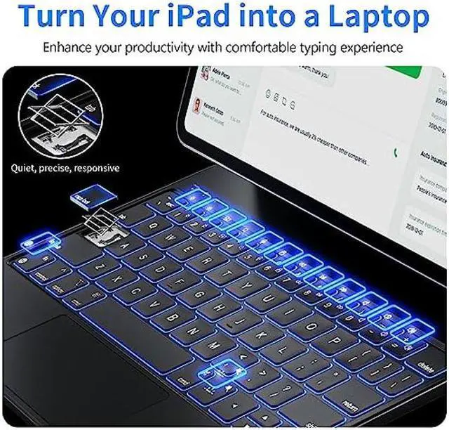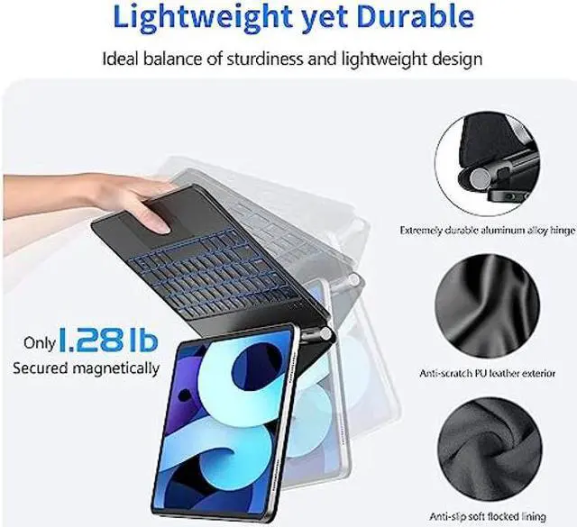 7-Color Backlit Keyboard: This iPad Pro 11 inch keyboard case features a backlit keyboard with adjustable 7 color brightness levels, allowing you to type comfortably even in low-light environments. The backlit keys enhance visibility and add an elegant touch to your iPad.