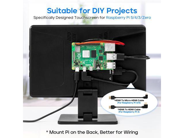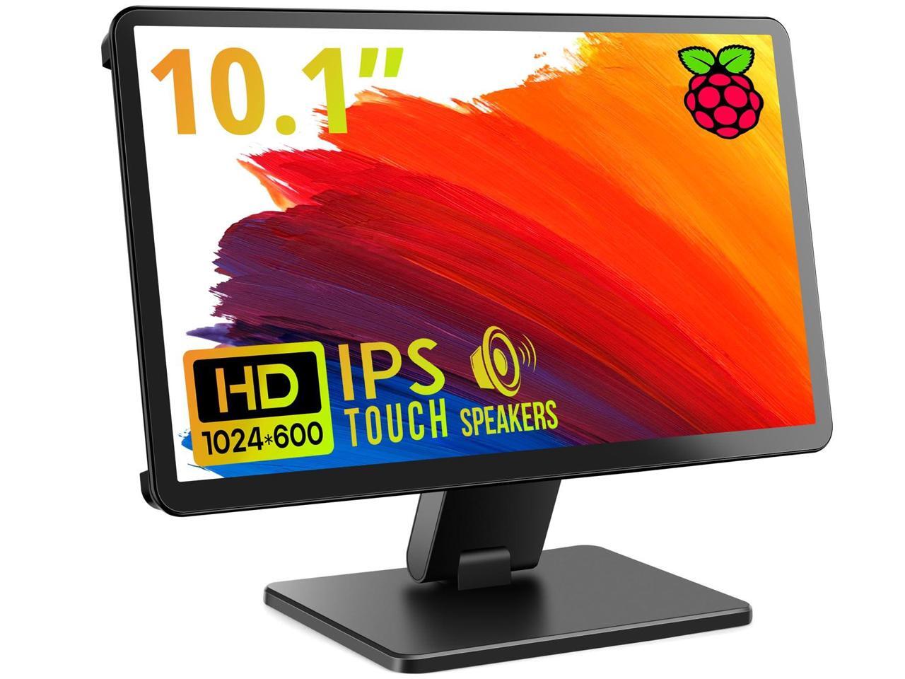 Touch Screen Monitor with Case,ROADOM 10.1'' Raspberry Pi Screen, IPS FHD 1024x600,Responsive and Smooth Touch,Dual Built-in Speakers,HDMI Input,Compatible with Raspberry Pi 5/4/3/Zero,Versatile Stand