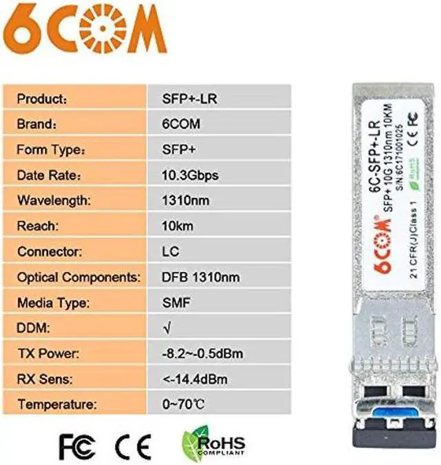 Compatible Cisco P/N: SFP-10G-LR 10GBASE-LR SFP+ transceiver module for SMF, 1310nm wavelength, LC duplex connector.