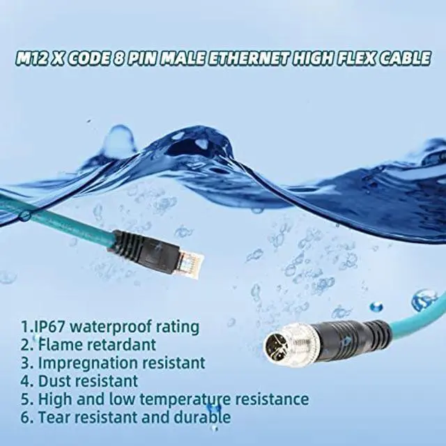 • This M12 X-code to RJ45 Waterproof IP67-rated environmental sealing for dust & water protection; Protocol: ETHER NET Cable,Reliable Signal Transmission,360 Degree Omni-directional Shielding in EMI Environment. Overmolded strain reliefs on both RJ45 and M12 connectors, black PUV jacket cable which is stable and durable.