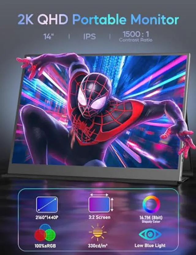 Super portable. Great picture quality. Can take it everywhere in backpack. One of the standout features is its portability. It's surprisingly light, so moving it around or taking it with me hasn't been a chore. In summary, the KEEPTIME Portable 2K Gaming Monitor brilliantly combines portability, high-quality display, and functional versatility. It's an investment that has proven to be worth its weight in gold, accommodating all the critical aspects for mobile professionals like myself -- and even throwing in some features that satisfy the casual gamer. After an extensive period of research and comparison, this monitor has not only met but surpassed your expectations.