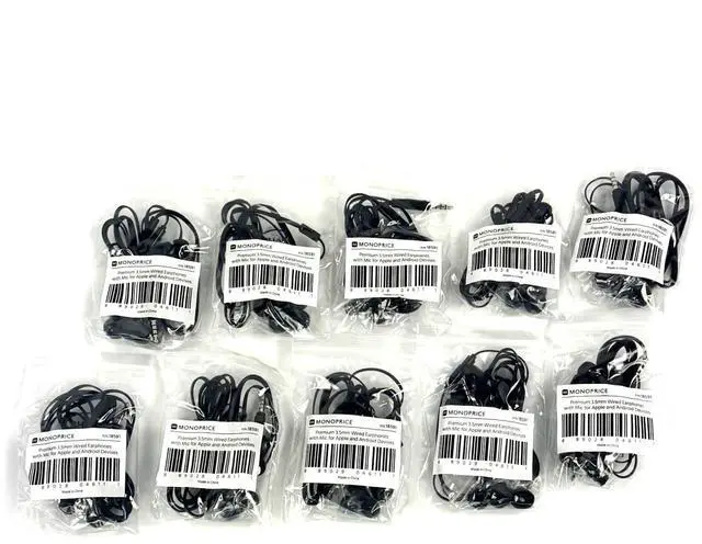 Lot of 10 Monoprice Premium 3.5mm Wired Earbuds Headphones with Microphone 18591