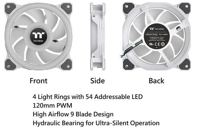 Thermaltake Riing Quad 12 RGB Radiator Fan TT Premium 3 Pack White CLF100PL12SWB