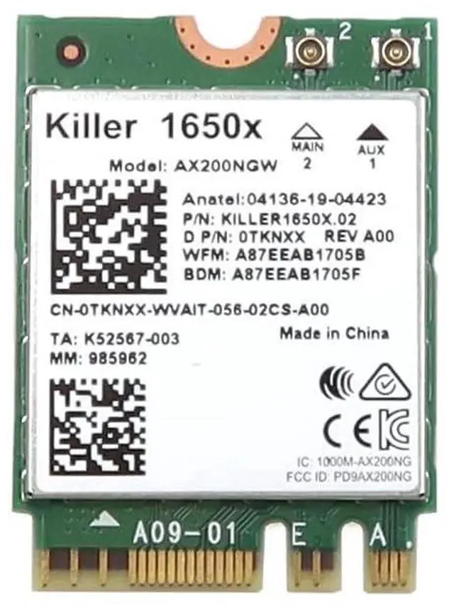 Intel AX200NGW Wi-Fi 6 AX200 (Gig+) PCI-Express M.2 2230 802.11ax WLAN 2.4Gbps Bluetooth 5.2 WiFi Card TKNXX 0TKNXX CN-0TKNXX.