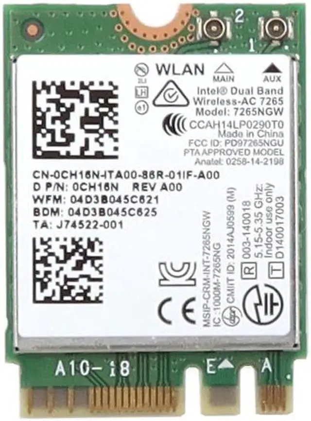 Intel 7265NGW Dual Band Wireless-AC 7265 PCI-Express M.2 2230 802.11ac WLAN 867Mbps Bluetooth 4.2 WiFi Card CH16N 0CH16N CN-0CH16N.