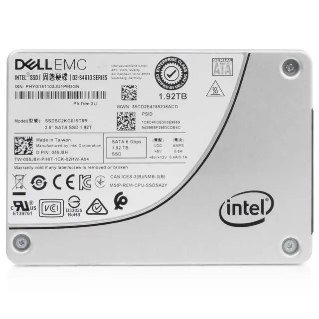 Dell/Intel D3-S4610 1.92TB SSDSC2KG019T8R SATA 6Gb/s 3 DWPD 3D TLC 2.5in SSD