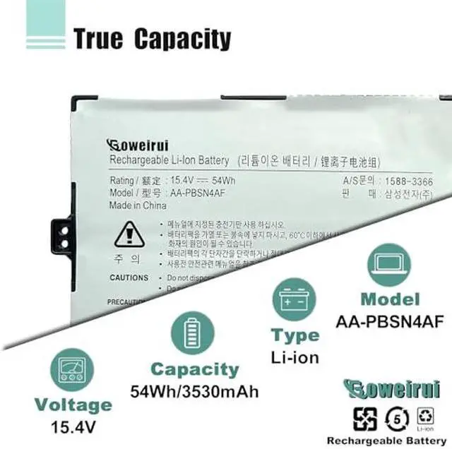 • [(Specifications)] Battery Model Name: AA-PBSN4AF, Voltage: 15.4V; Capacity: 54Wh/3530mAh 4-cell