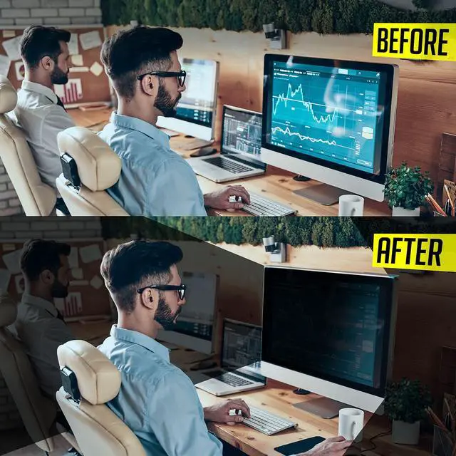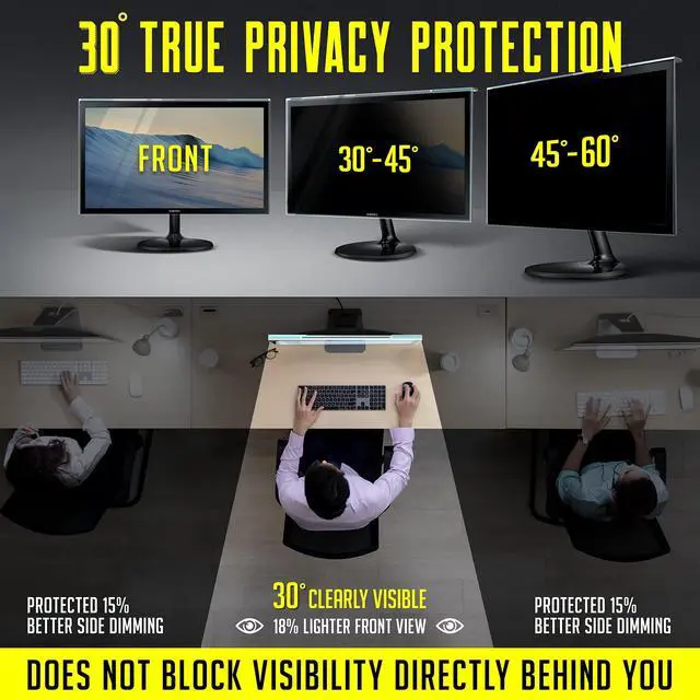 Do you often have to worry about performing everyday tasks on your computer just because you fear a lot of people prying around or snooping into your desktop screen? Do you hesitate entering the passwords or reading/viewing/surfing content on your desktop that befits to an office environment but you still do not want others to know about it? Try Vintez Computer Privacy Screen Filter - Restricts the visibility of screen to the straight position - Helps improve confidentiality of your information, surfing details, etc. and reduces risk of any visual hacking or visual thefts - Anti-scratch technology, reduces exposure of your eyes to UV by 96% and curbs Blue light by 65% - Micro-suction technology instead of the installation kits -