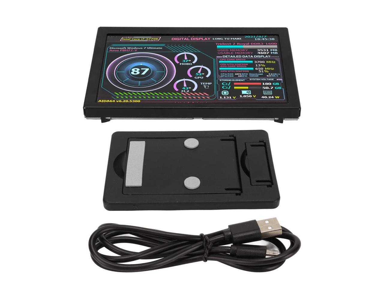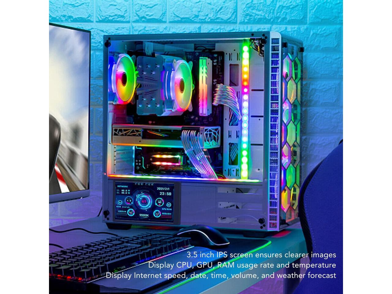 - 5in IPS Screen: The data temperature monitor with 800x480 resolution and clear screen can be placed inside or outside the case. It can not only display CPU, GPU, RAM usage and temperature, but also internet speed, date, time, volume, and weather forecast.