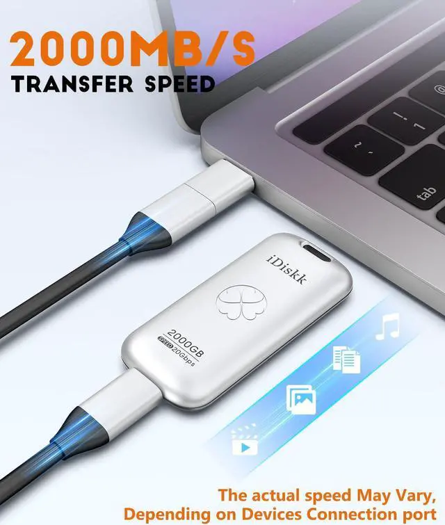 [(Work Fast and Dependable ,Say goodbye to lag)] Get ready for a revolution in data transfer by iDiskk Solid State Hard Drive with performance featuring up to 2000MB/s read/write speeds in a portable drive,Save a plent of time storing and transferring data.