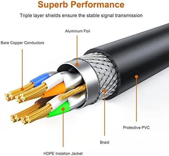Standard: Cat 7, SSTP; Meet TIA/EIA-568-B. 2-10 Specfications, Backward compatible with Cat 5e / Cat 6 / Cat 6a Ethernet Cable