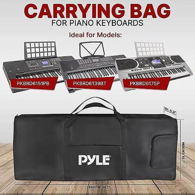 Pyle Keyboard Case, 61 Key Carrying Case Bag for Piano Keyboards, Protects and Covers Portable Digital Keyboard Water Resistant, Use for Models PKBRD6139BT, PKBRD6151PB, and PKBRD6175P