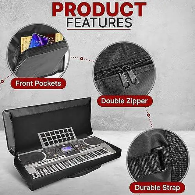 DURABLE ZIPPERS AND BAG STRAP: The Pyle 61 key keyboard case is equipped with dual metal zippers of high quality which slide smoothly with no worry of being stuck and broken. Also comes with a strap, durable enough to carry 30 lbs without breaking