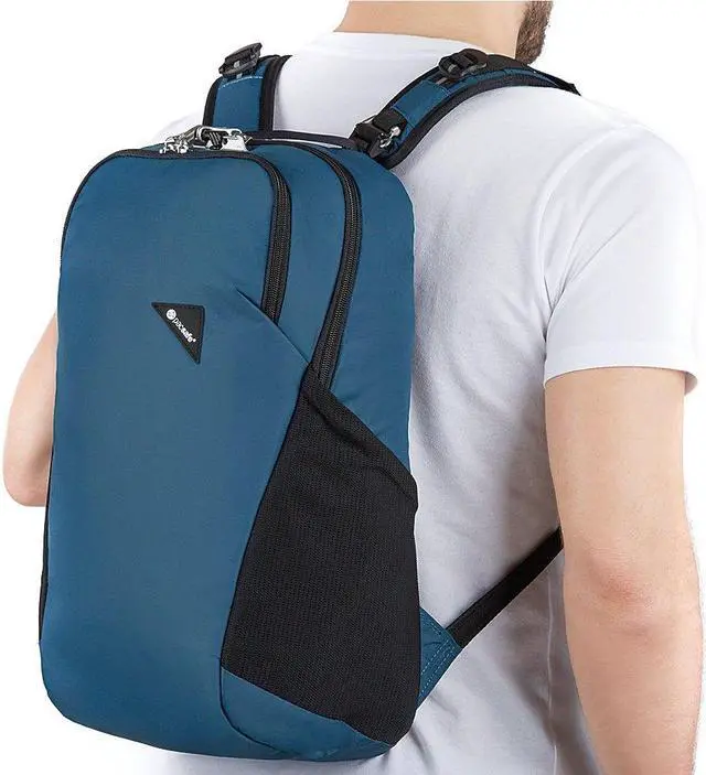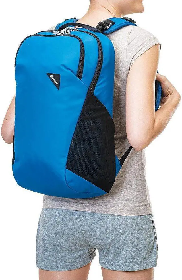 The Pacsafe (r) Vibe 20 Anti-Theft 20L Backpack is the perfect pack for zipping around town on your bike o catching the tube to work! Made of 210 Nylon Full Dull Mild Oxford, PU1000mm. Zip closure with interlocking zip pullers ingeniously slide on top of one another and interconnect making it harder for pickpockets to unzip your bag and whip out your valuables. eXomesh (r) slashguard panels placed in lower front, side and bottom provide protection against knives and blades. Padded backpack straps with adjustable sternum strap. Slashproof CarrySafe (r) shoulder straps are made of tough nylon twill and high-tensile, stainless steel wire and allow the bag to anchor to a secure fixture RFID-blocking pocket blocks identity scanners from retrieving personal information found in RFID chips in ID and credit cards.