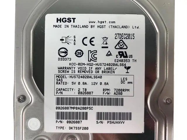 (NOT FOR HOME PC!) Lot 5 HGST Ultrastar 7K4000 HUS724020ALS640 2TB 7.2K SAS 6Gbps 3.5" Hard Drive
