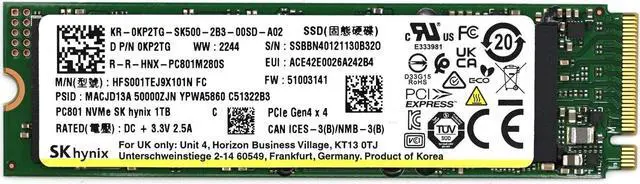 SK Hynix 1TB PC801 M.2 NVMe PCIe Gen4x4 2280 SSD HFS001TEJ9X101N Dell KP2TG