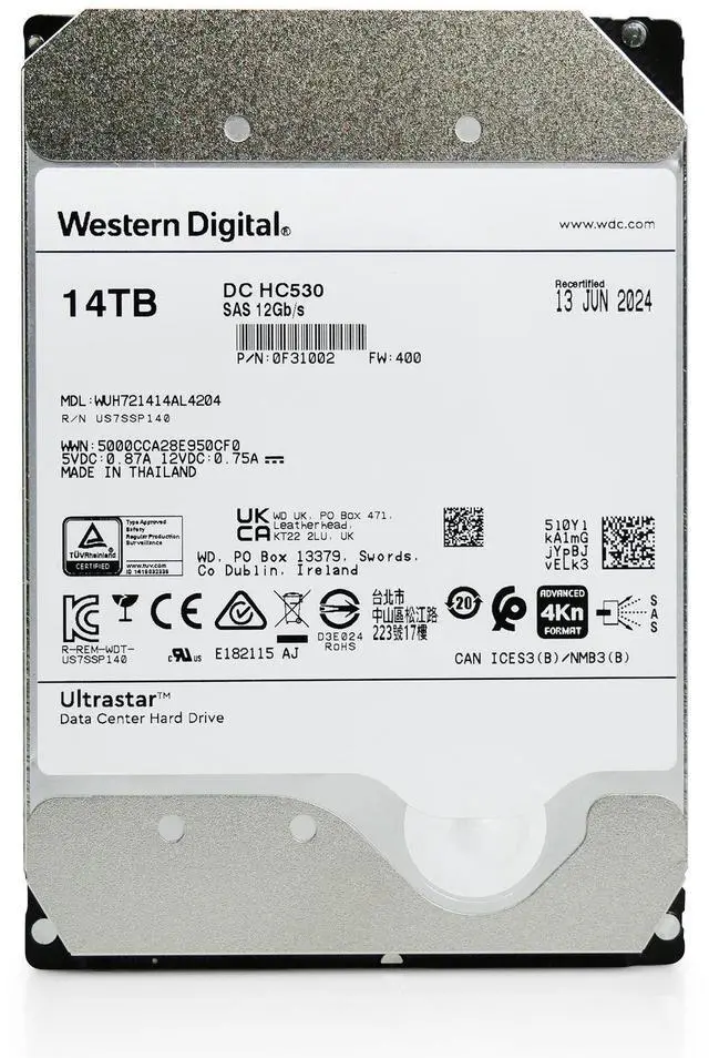 (NOT FOR HOME PC!) WD DC HC530 14TB 7.2K RPM SAS 12Gb/s 4Kn 3.5" HDD WUH721414AL4204 0F31002