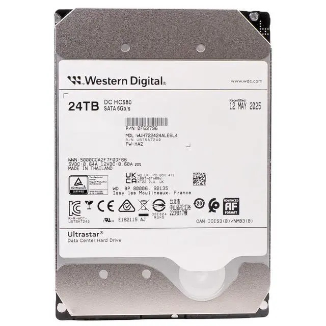 WD Ultrastar DC HC580 24TB 7.2K RPM SATA 6GB/s 3.5in HDD WUH722424ALE6L4 0F62796