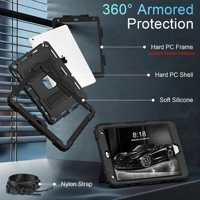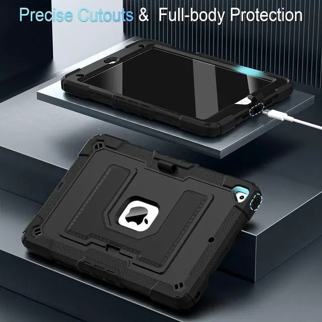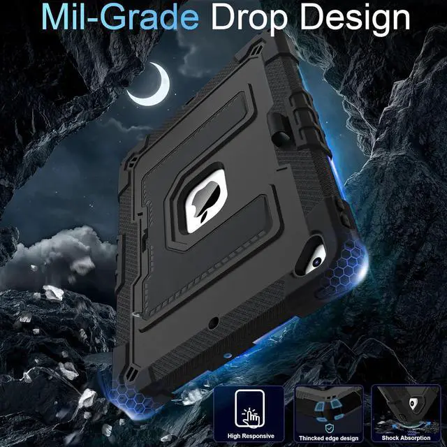 Mil-Grade Drop Protection --- The case is made from shockproof hard PC & soft silicone (so nice to touch),upgrad grade thickened corners & shock-proof design keeps your ipad case better protected to avoid daily bumps,scrapes,defeat 99.99% accidental drops,unbreakable!