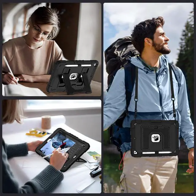 Upgraded Strong Adjustable Stand --- 1- iPad case built-in reinforced kickstand offers two angles for viewing and typing,easy access to your favorite movies, games, or work at any time. 2-This innovative stand ensures a stable, sturdy support for iPad that won't tilt or slide during use, providing the most reliable stability and a longer lifespan. 3- Easy-to-grab bump design is more friendly to everyone,convenient to carry and use,unique and professional design brings your ipad a stylish new look and full protection!