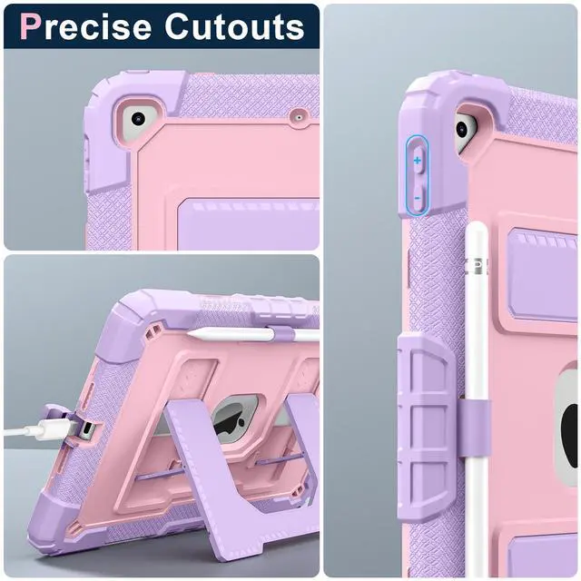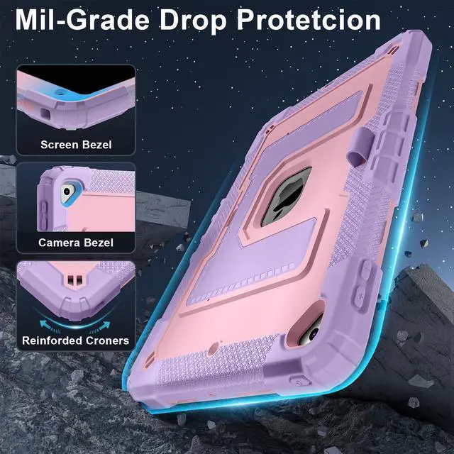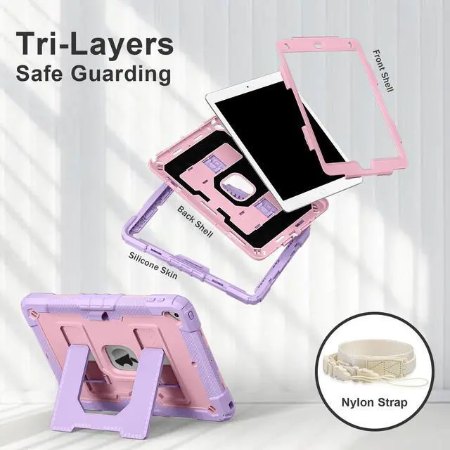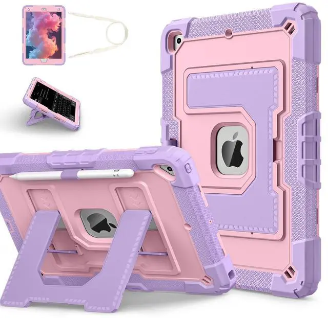 Mil-Grade Drop Protection --- The case is made from shockproof hard PC & soft silicone (so nice to touch),upgrad grade thickened corners & shock-proof design keeps your ipad case better protected to avoid daily bumps,scrapes,defeat 99.99% accidental drops,unbreakable!