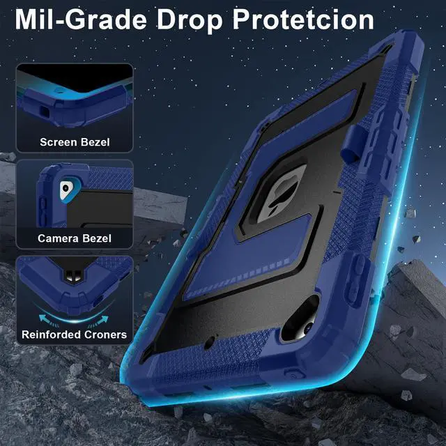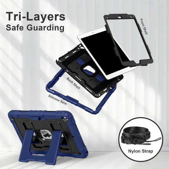 Mil-Grade Drop Protection --- The case is made from shockproof hard PC & soft silicone (so nice to touch),upgrad grade thickened corners & shock-proof design keeps your ipad case better protected to avoid daily bumps,scrapes,defeat 99.99% accidental drops,unbreakable!
