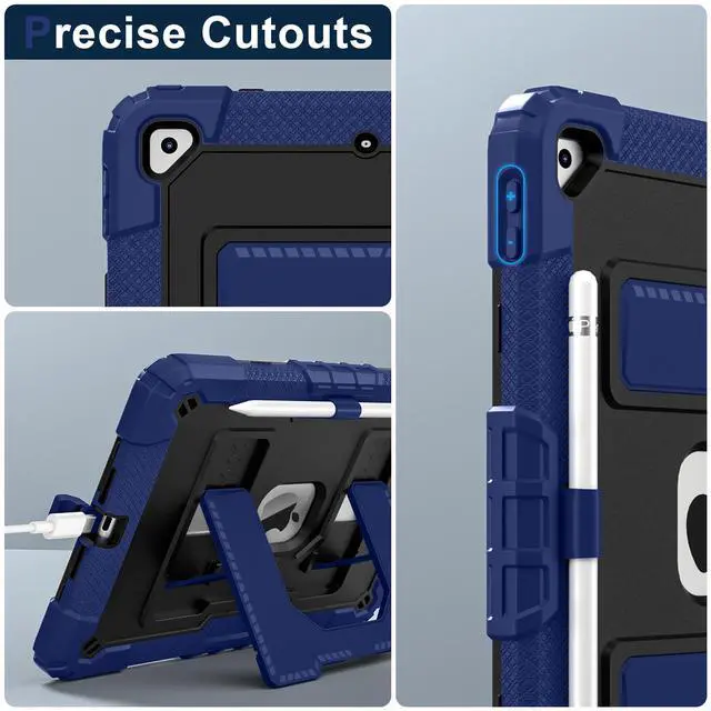 Upgraded Strong Adjustable Stand --- 1- iPad case built-in reinforced kickstand offers two angles for viewing and typing,easy access to your favorite movies, games, or work at any time. 2-This innovative stand ensures a stable, sturdy support for iPad that won't tilt or slide during use, providing the most reliable stability and a longer lifespan. 3- Easy-to-grab bump design is more friendly to everyone,convenient to carry and use,unique and professional design brings your ipad a stylish new look and full protection!