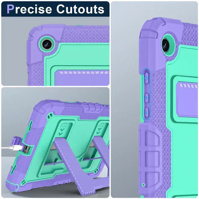 Mil-Grade Drop Protection --- The case is made from shockproof hard PC & soft silicone (so nice to touch),upgrad grade thickened corners & shock-proof design keeps your tablet better protected to avoid daily bumps,scrapes,defeat 99.99% accidental drops,unbreakable!