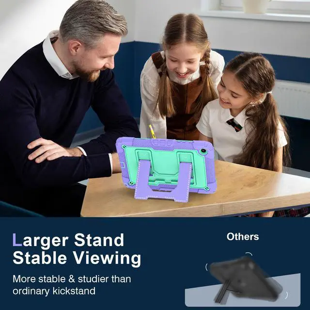 Upgraded Strong Adjustable Stand --- 1- The case built-in reinforced kickstand offers two angles for viewing and typing,easy access to your favorite movies, games, or work at any time. 2-This innovative stand ensures a stable, sturdy support for tablet that won't tilt or slide during use, providing the most reliable stability and a longer lifespan. 3- Easy-to-grab bump design is more friendly to everyone,convenient to carry and use,unique and professional design brings your tablet a stylish new look and full protection!