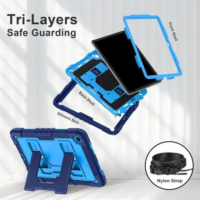 Mil-Grade Drop Protection --- The case is made from shockproof hard PC & soft silicone (so nice to touch),upgrad grade thickened corners & shock-proof design keeps your tablet better protected to avoid daily bumps,scrapes,defeat 99.99% accidental drops,unbreakable!