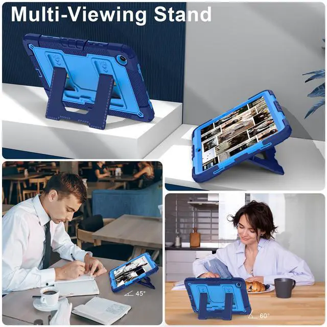 Upgraded Strong Adjustable Stand --- 1- The case built-in reinforced kickstand offers two angles for viewing and typing,easy access to your favorite movies, games, or work at any time. 2-This innovative stand ensures a stable, sturdy support for tablet that won't tilt or slide during use, providing the most reliable stability and a longer lifespan. 3- Easy-to-grab bump design is more friendly to everyone,convenient to carry and use,unique and professional design brings your tablet a stylish new look and full protection!