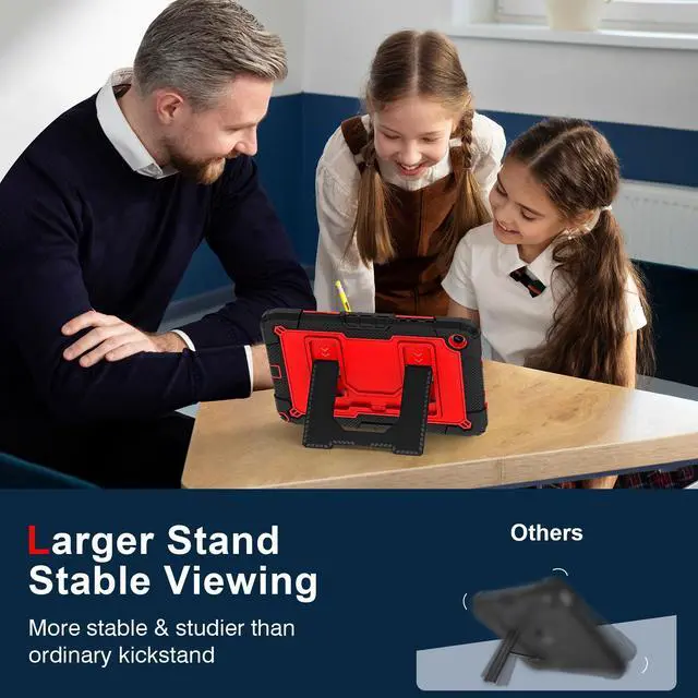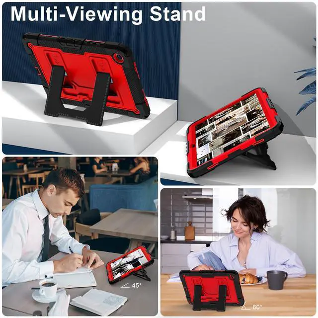 Upgraded Strong Adjustable Stand --- 1- The case built-in reinforced kickstand offers two angles for viewing and typing,easy access to your favorite movies, games, or work at any time. 2-This innovative stand ensures a stable, sturdy support for tablet that won't tilt or slide during use, providing the most reliable stability and a longer lifespan. 3- Easy-to-grab bump design is more friendly to everyone,convenient to carry and use,unique and professional design brings your tablet a stylish new look and full protection!