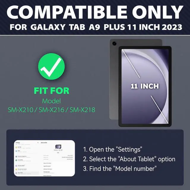Compatibility --- Specially Designed Case for Galaxy Tab A9+ / A9 Plus 11 inch 2023 (Model: SM-X210/SM-X216/SM-X218). Not compatible with any other devices.NOT fit any other model.Please check your tablet to avoid the incorrect model number.