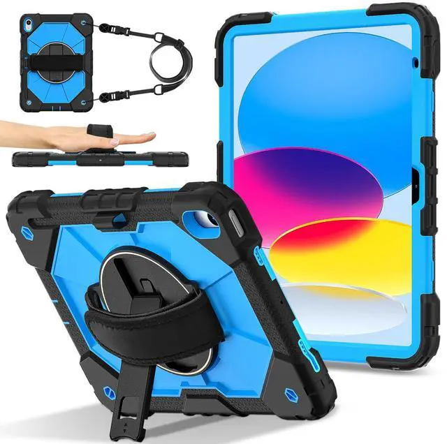 WERLEO Case for iPad 10.2 inch 2021 2020 2019 9th 8th 7th Generation with Rotating Stand Pencil Holder Hand/Shoulder Strap, Heavy Duty Shockproof Protective Cover Blue