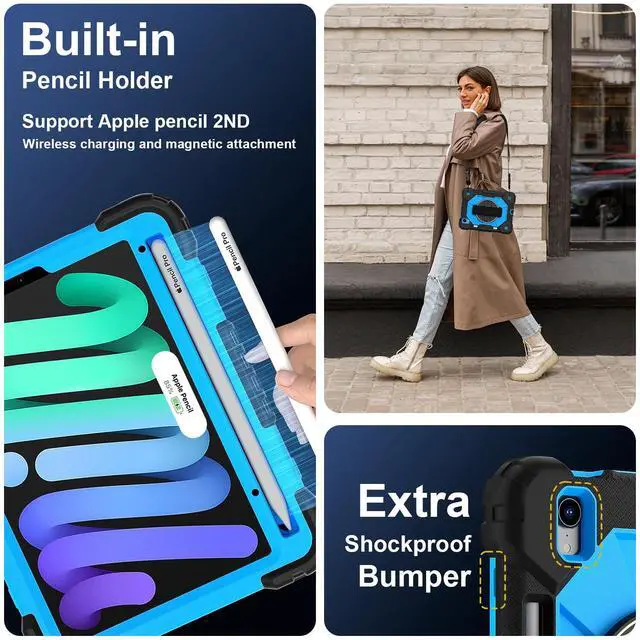 Adjustable Shoulder Strap : Adjustable shoulder grip can be slanted and release your hands completely. This function is perfect for traveling, restaurant ordering, home product introduction, engineer outdoor operation, scene of industrial construction,teacher, etc. Also, the strap allows you to hang up your tablet behind car seat for entertainment for kids.