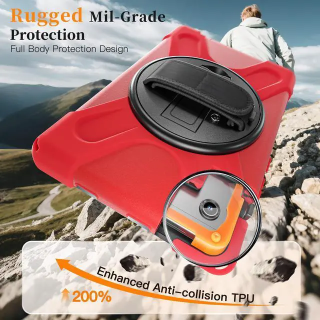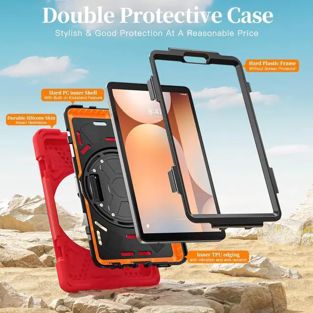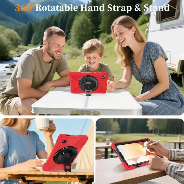 360° Rotating Hand Strap & Stand: The Protective Samsung Galaxy Tab A11 8.7" 2025 Case Built-in 360° Rotatable Hand Strap & Kickstand on the back, flexible in Vertical & Horizontal any other angles ideal for watching video, reading or teaching, maximinzely free your hand. Adjustable Hand Strap perfectly suitable uses for all size of hands, adults, students, child