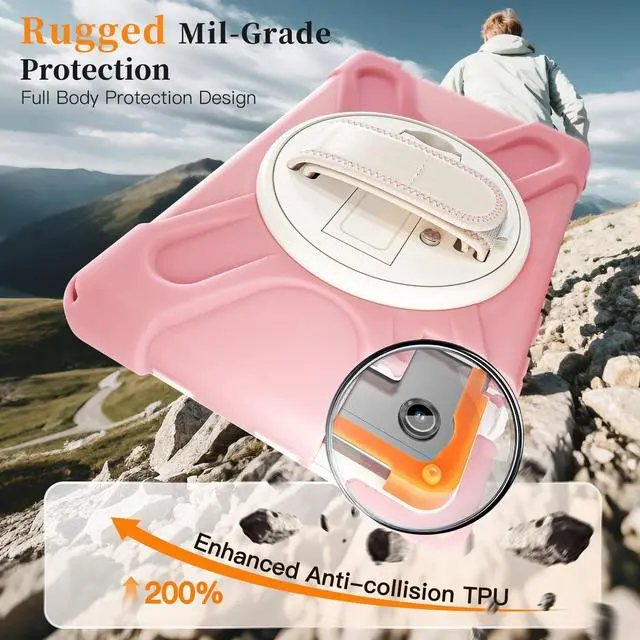 360° Rotating Hand Strap & Stand: The Protective Samsung Galaxy Tab A11 8.7" 2025 Case Built-in 360° Rotatable Hand Strap & Kickstand on the back, flexible in Vertical & Horizontal any other angles ideal for watching video, reading or teaching, maximinzely free your hand. Adjustable Hand Strap perfectly suitable uses for all size of hands, adults, students, child
