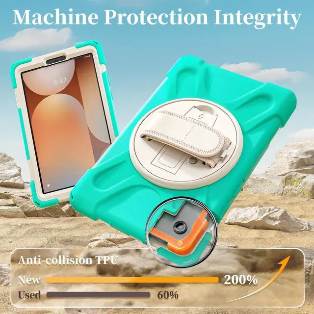 360° Rotating Hand Strap & Stand: The Protective Samsung Galaxy Tab A11 8.7" 2025 Case Built-in 360° Rotatable Hand Strap & Kickstand on the back, flexible in Vertical & Horizontal any other angles ideal for watching video, reading or teaching, maximinzely free your hand. Adjustable Hand Strap perfectly suitable uses for all size of hands, adults, students, child