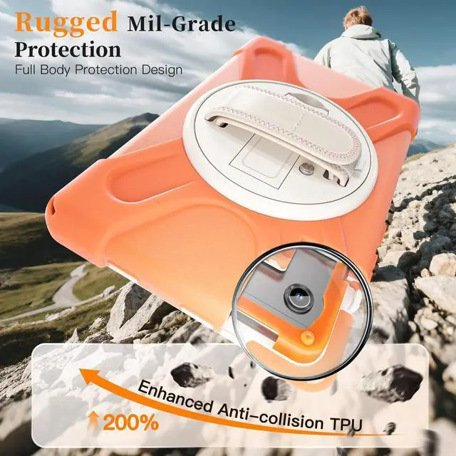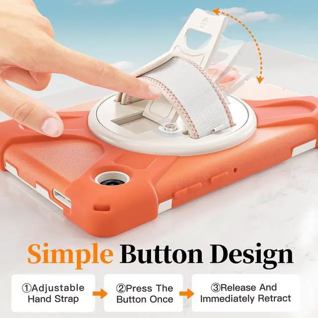 360° Rotating Hand Strap & Stand: The Protective Samsung Galaxy Tab A11 8.7" 2025 Case Built-in 360° Rotatable Hand Strap & Kickstand on the back, flexible in Vertical & Horizontal any other angles ideal for watching video, reading or teaching, maximinzely free your hand. Adjustable Hand Strap perfectly suitable uses for all size of hands, adults, students, child