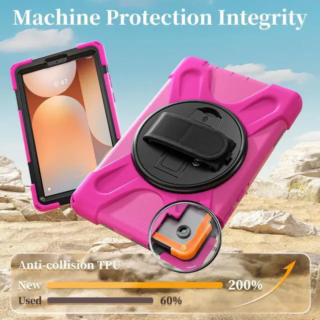 360° Rotating Hand Strap & Stand: The Protective Samsung Galaxy Tab A11 8.7" 2025 Case Built-in 360° Rotatable Hand Strap & Kickstand on the back, flexible in Vertical & Horizontal any other angles ideal for watching video, reading or teaching, maximinzely free your hand. Adjustable Hand Strap perfectly suitable uses for all size of hands, adults, students, child