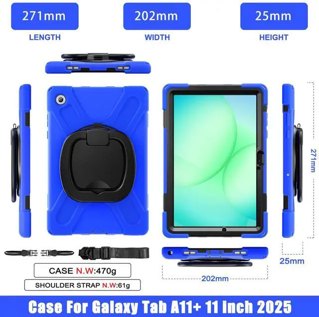 360° Rotating Hand Strap and Stand: The Protective Samsung Galaxy Tab A11 Plus 11" Case Built-in 360° Rotatable Hand Strap & Kickstand on the back, flexible in Vertical & Horizontal any other angles ideal for watching video, reading or teaching, maximinzely free your hand. Adjustable Hand Strap perfectly suitable uses for all size of hands, adults, students, child