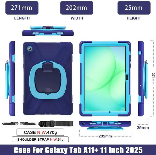 Compatibility: The Shockproof Case only designed for Samsung Galaxy Tab A11 Plus 11 Inch 2025 (Model SM-X310/SM-X315/SM-X316/SM-X230/SM-X235/SM-X236). NOTICE: Screen Protector & S Pen is NOT included