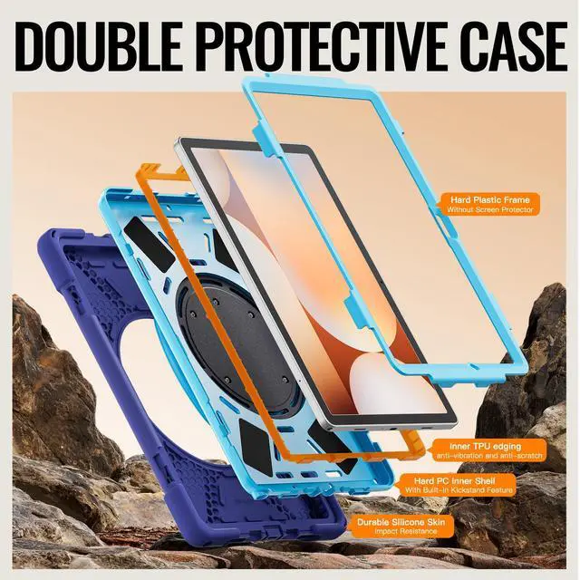 360° Rotating Hand Strap and Stand: The Protective Samsung Galaxy Tab A11 Plus 11" Case Built-in 360° Rotatable Hand Strap & Kickstand on the back, flexible in Vertical & Horizontal any other angles ideal for watching video, reading or teaching, maximinzely free your hand. Adjustable Hand Strap perfectly suitable uses for all size of hands, adults, students, child