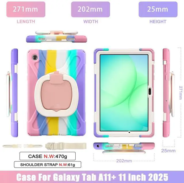 360° Rotating Hand Strap and Stand: The Protective Samsung Galaxy Tab A11 Plus 11" Case Built-in 360° Rotatable Hand Strap & Kickstand on the back, flexible in Vertical & Horizontal any other angles ideal for watching video, reading or teaching, maximinzely free your hand. Adjustable Hand Strap perfectly suitable uses for all size of hands, adults, students, child